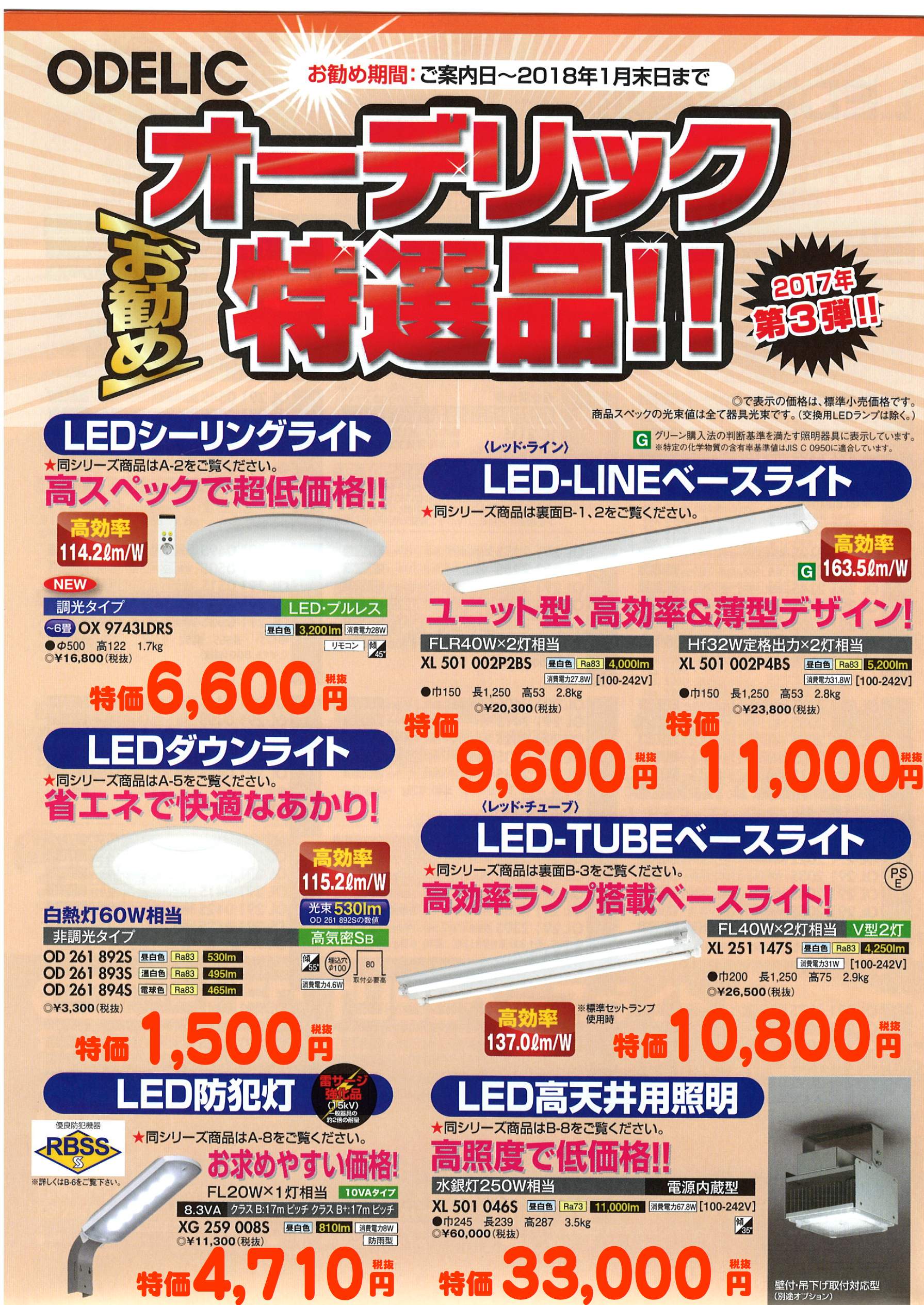 ODELIC「得選品フェア2017 秋冬」 セール期間は、本日より2018年1月31日(水)までとなります。